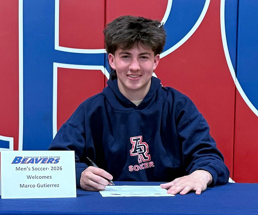 Natomas FA (Rush) player, Marco Gutierrez, signs a Letter of Intent to play soccer for American River College beginning the Fall of 2026.